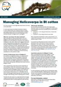 This fact sheet addresses the issue of Helicoverpa survivors (larvae larger than 3mm) in Bt cotton fields, and control methods available to growers. |