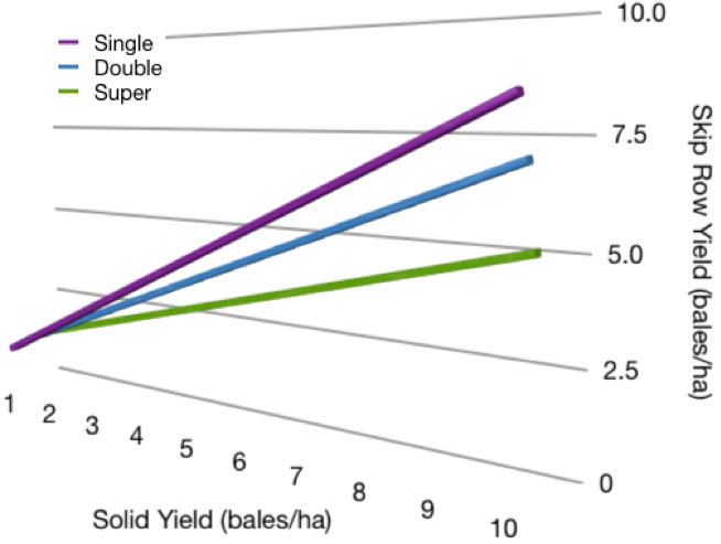 As water becomes limited skip row configurations can become an option as they function by increasing the volume of soil that plants have to explore, providing a bigger reservoir of available moisture and allowing the plants to hold on for longer during dry periods.