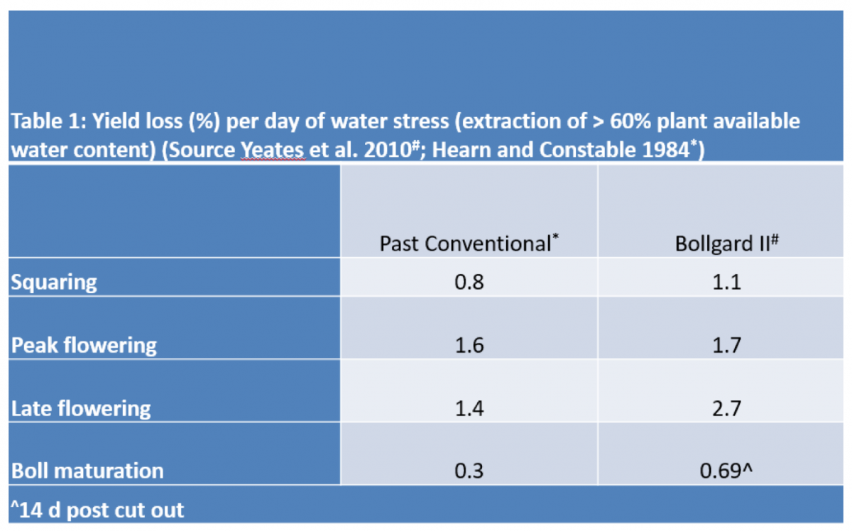Yes, Bollgard cotton has an increase in water use earlier in the season which is attributed the higher and earlier fruit load, which has important implications on timing of irrigations.