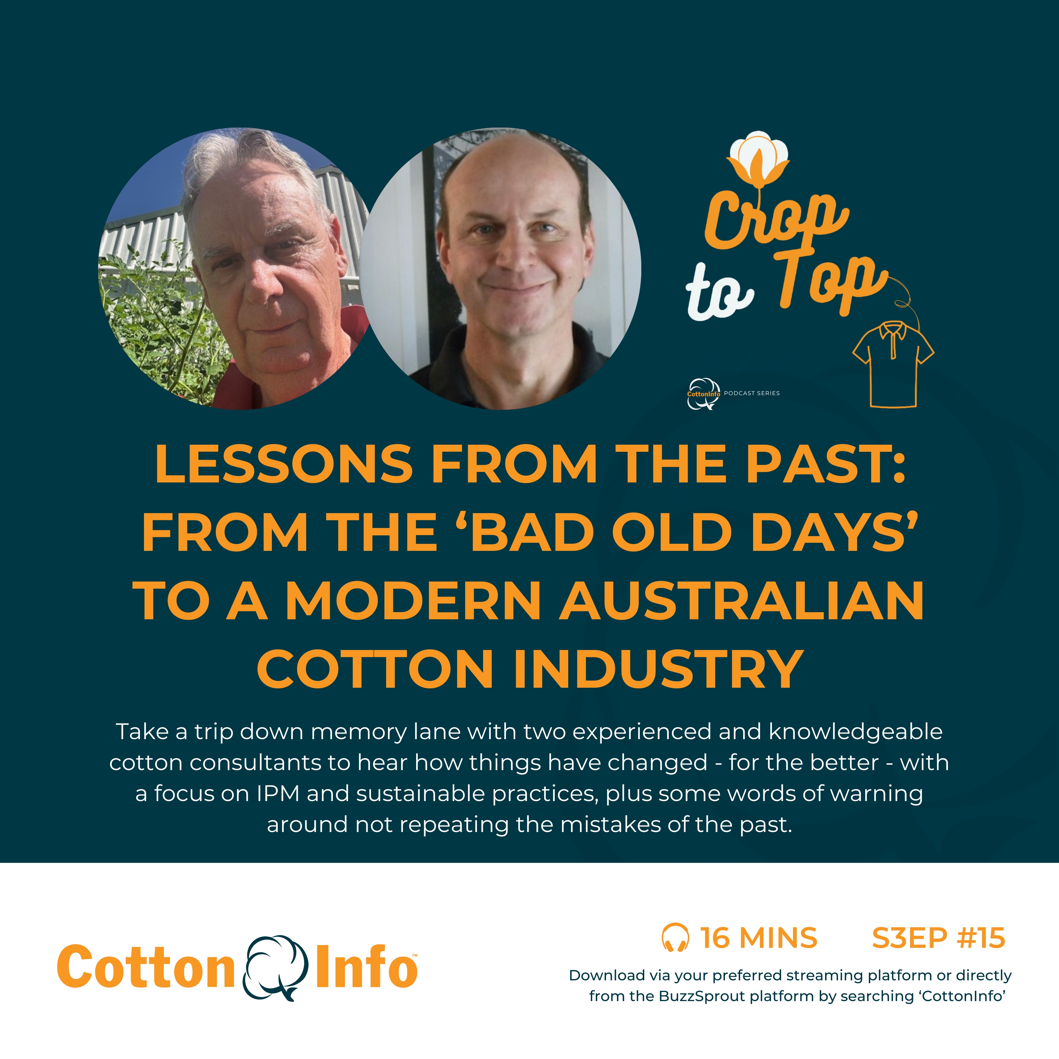 The CottonInfo 'Crop to Top' podcast recently hosted an important discussion with two of our industry's most knowledgeable, long-time consultants - Brian Baird and Hugo Weissen - about challenges of pest management in the decades gone by, and the importance of not repeating spray mistakes of the past. If you're new to the industry, it's a must listen, but there are some pearls of wisdom in here for everyone.