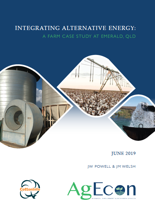 Read the results of a CRDC-supported study into the energy use of a QLD irrigator, including analysis on the farm's centre-pivot, river pump and grain-drying facilities, conducted by AgEcon/CottonInfo's Jon Welsh and AgEcon's Janine Powell.