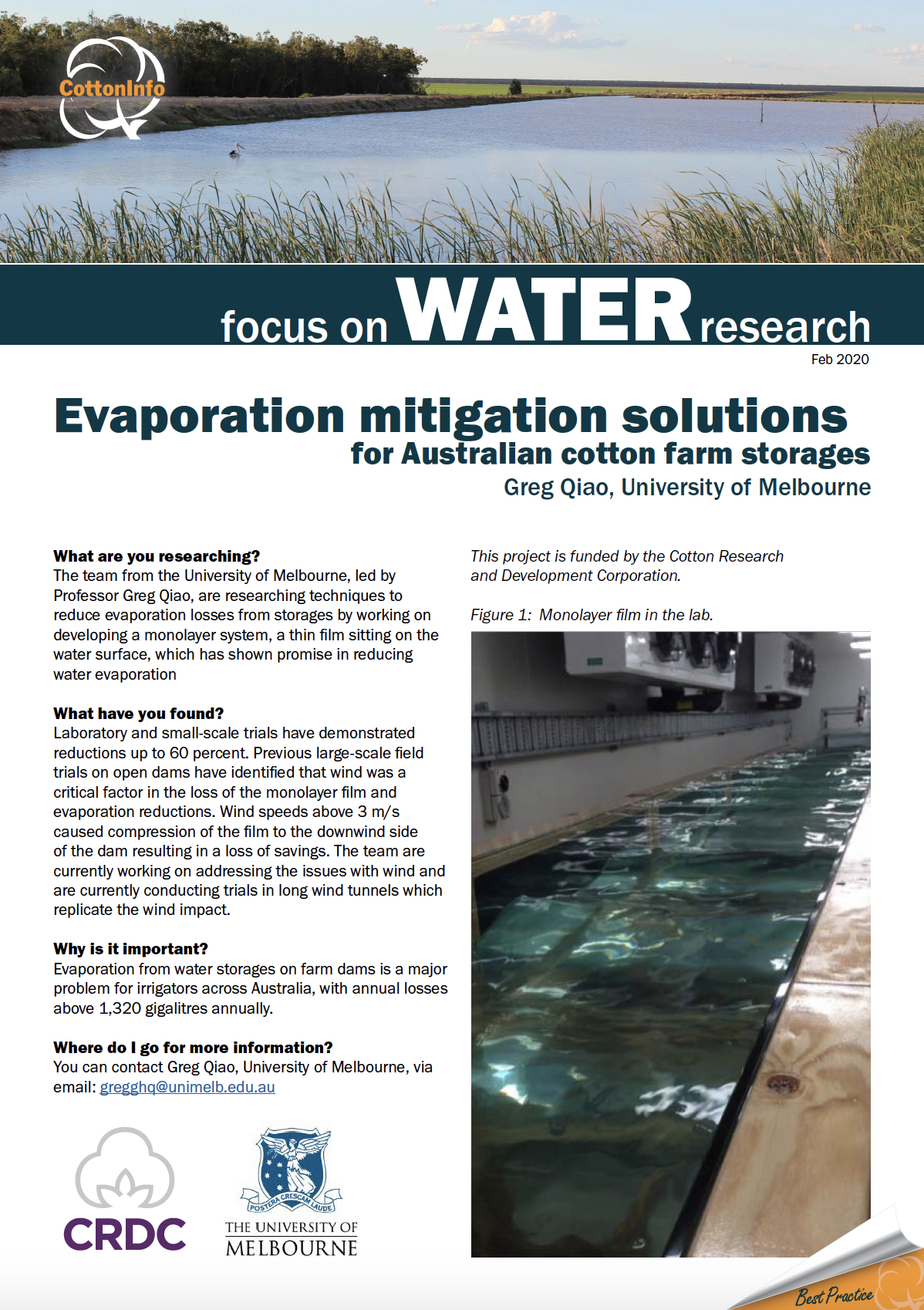 The Focus on water research series introduces you to the key cotton water researchers and their work. In this case study, Greg Qiao from the University of Melbourne explains his research into evaporation mitigation solutions for Australian cotton farms.