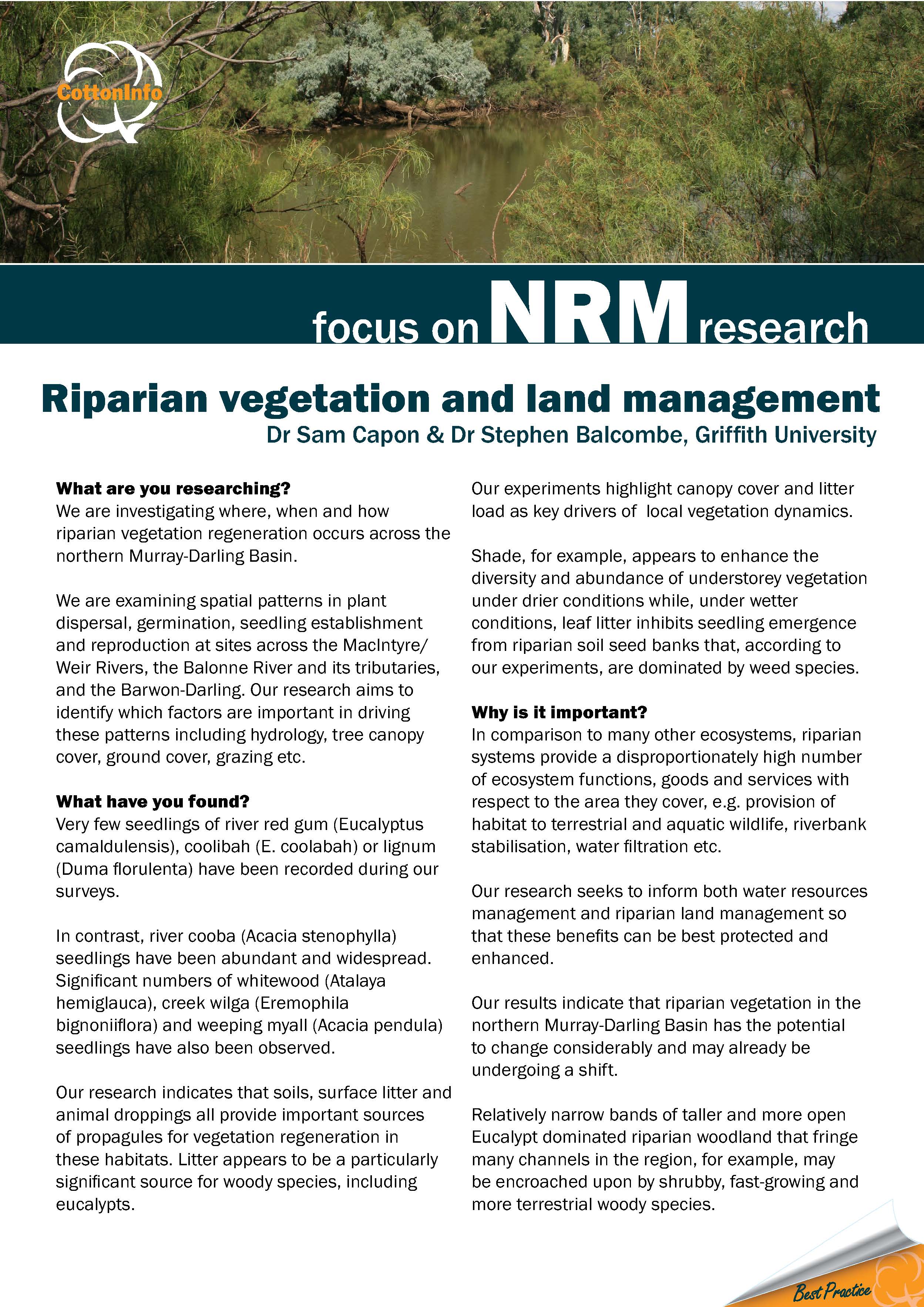 The Focus on NRM research series introduces you to the key cotton NRM researchers and their work.