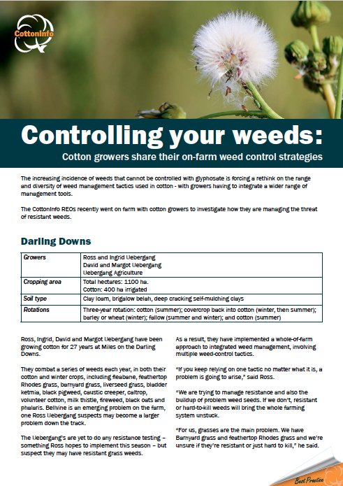 The increasing incidence of weeds that cannot be controlled with glyphosate is forcing a rethink on the range and diversity of weed management tactics used in cotton - with growers having to integrate a wider range of management tools.