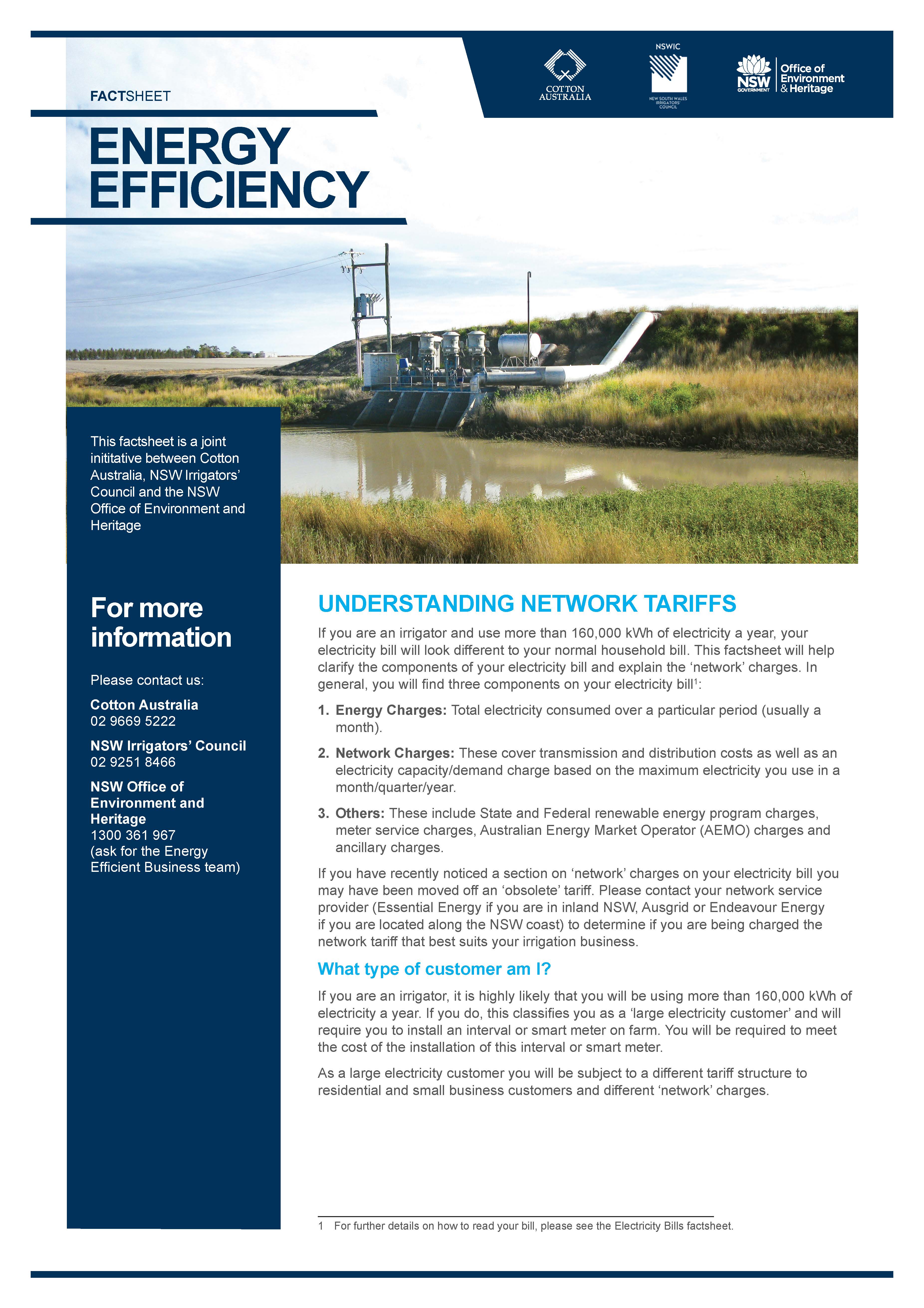 If you are an irrigator and use more than 160,000 kWh of electricity a year, your electricity bill will look different to your normal household bill. This fact sheet will help clarify the components of your electricity bill and explain the ‘network’ charges.