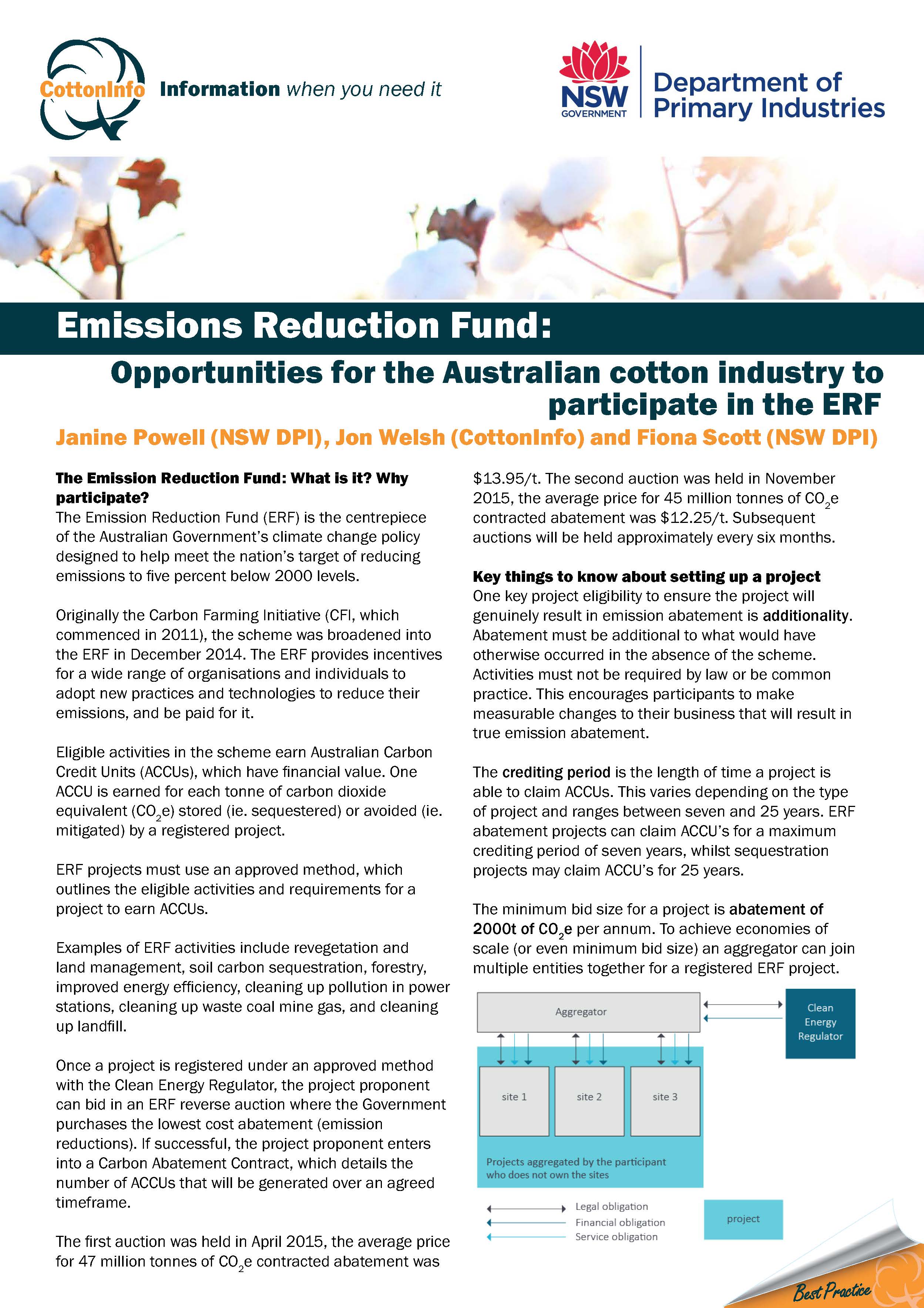 The Emissions Reduction Fund is the centrepiece of the Australian Government's climate change policy; designed to help meet the nation's target of reducing emissions to five percent below the year 2000 levels.