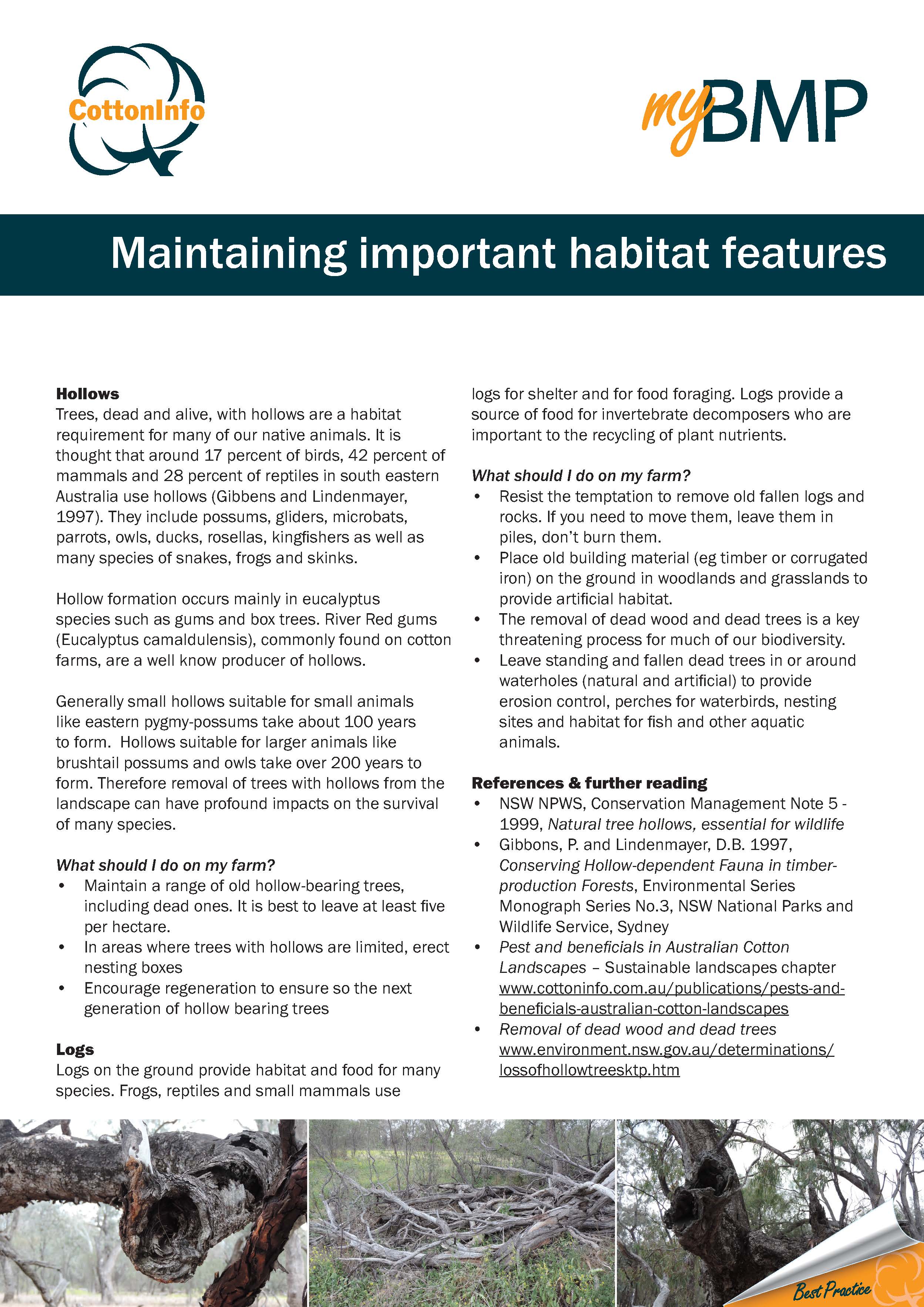 This fact sheet, from CottonInfo and myBMP's series of NRM best practice fact sheets, outlines how growers can maintain important habitat features on their farms.