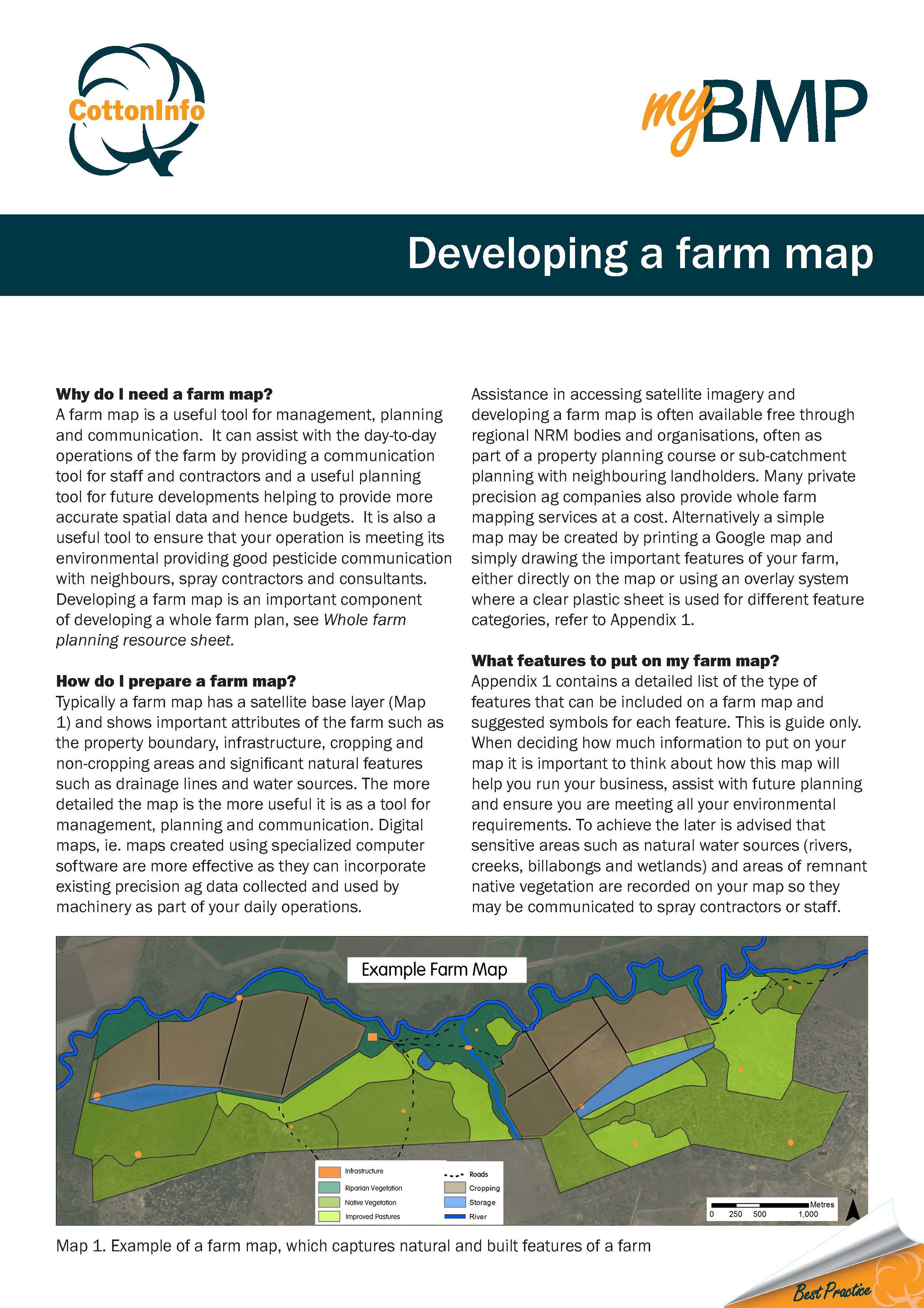 This fact sheet, from CottonInfo and myBMP's series of NRM best practice fact sheets, outlines how to create a farm map.