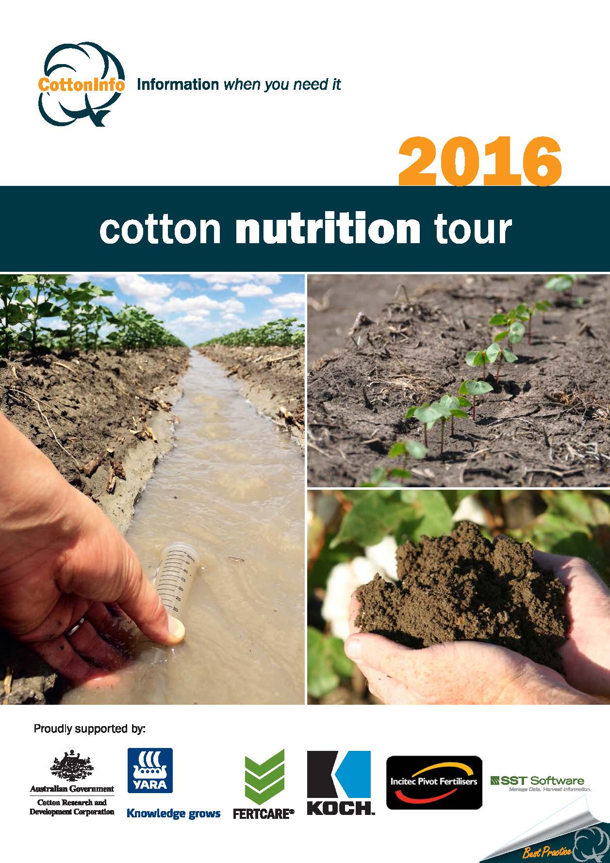This booklet was produced for CottonInfo's Cotton Nutrition Tour, which took place in February 2016. CottonInfo took 10 CRDC-funded researchers out to cotton farms in five cotton growing valleys across five days, to deliver the latest outcomes from cotton nutrition research.