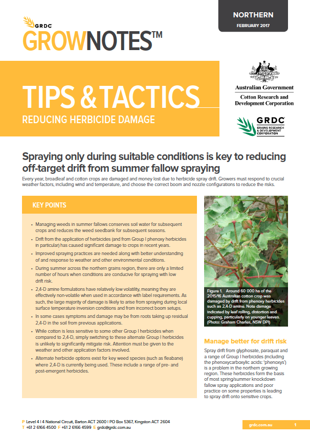 This fact sheet, developed by GRDC, CRDC and CottonInfo, provides tips and tactics for cotton and grain growers in reducing herbicide damage.