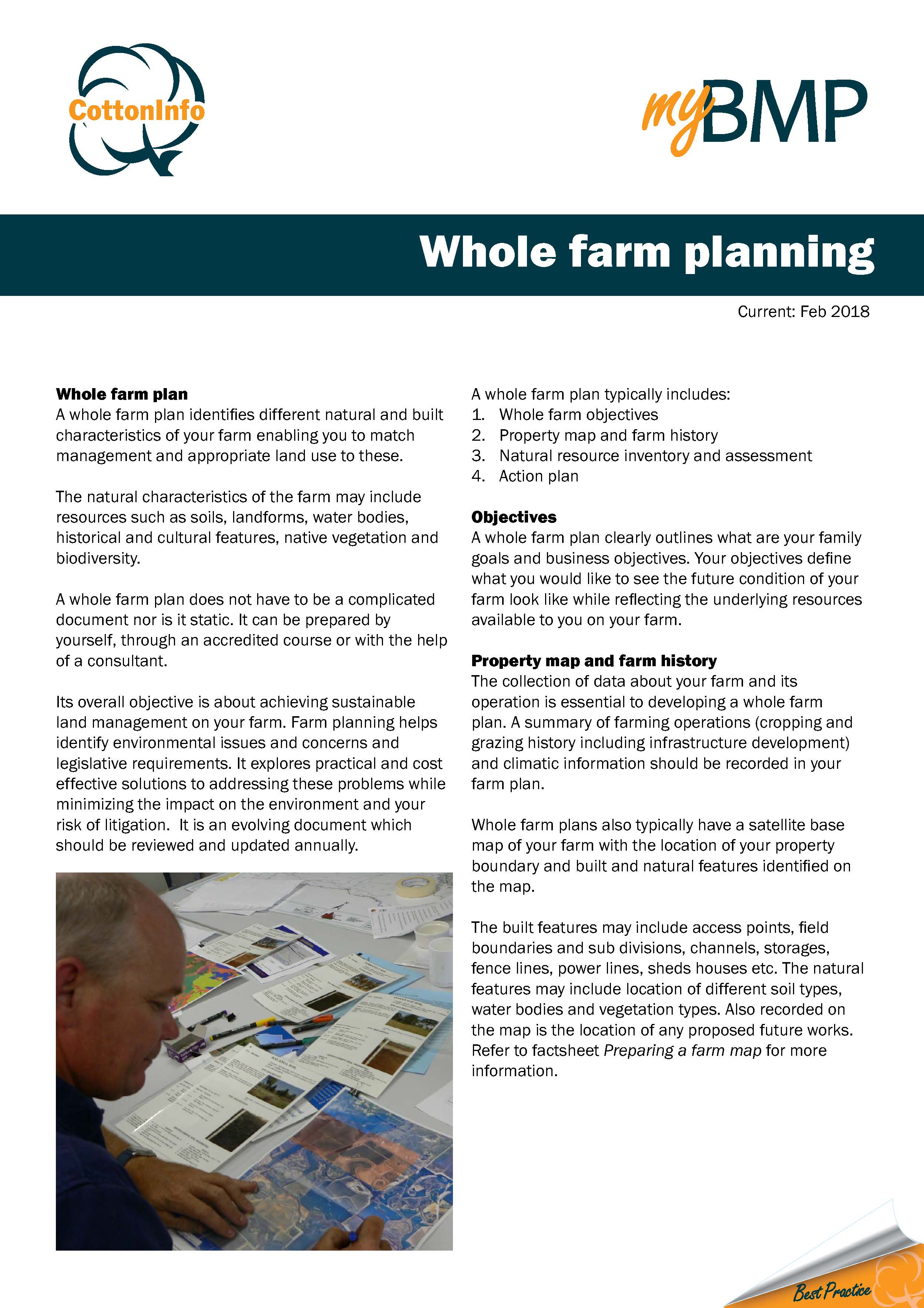 This fact sheet, from CottonInfo and myBMP's series of NRM best practice fact sheets, outlines what you need to know re whole farm planning.