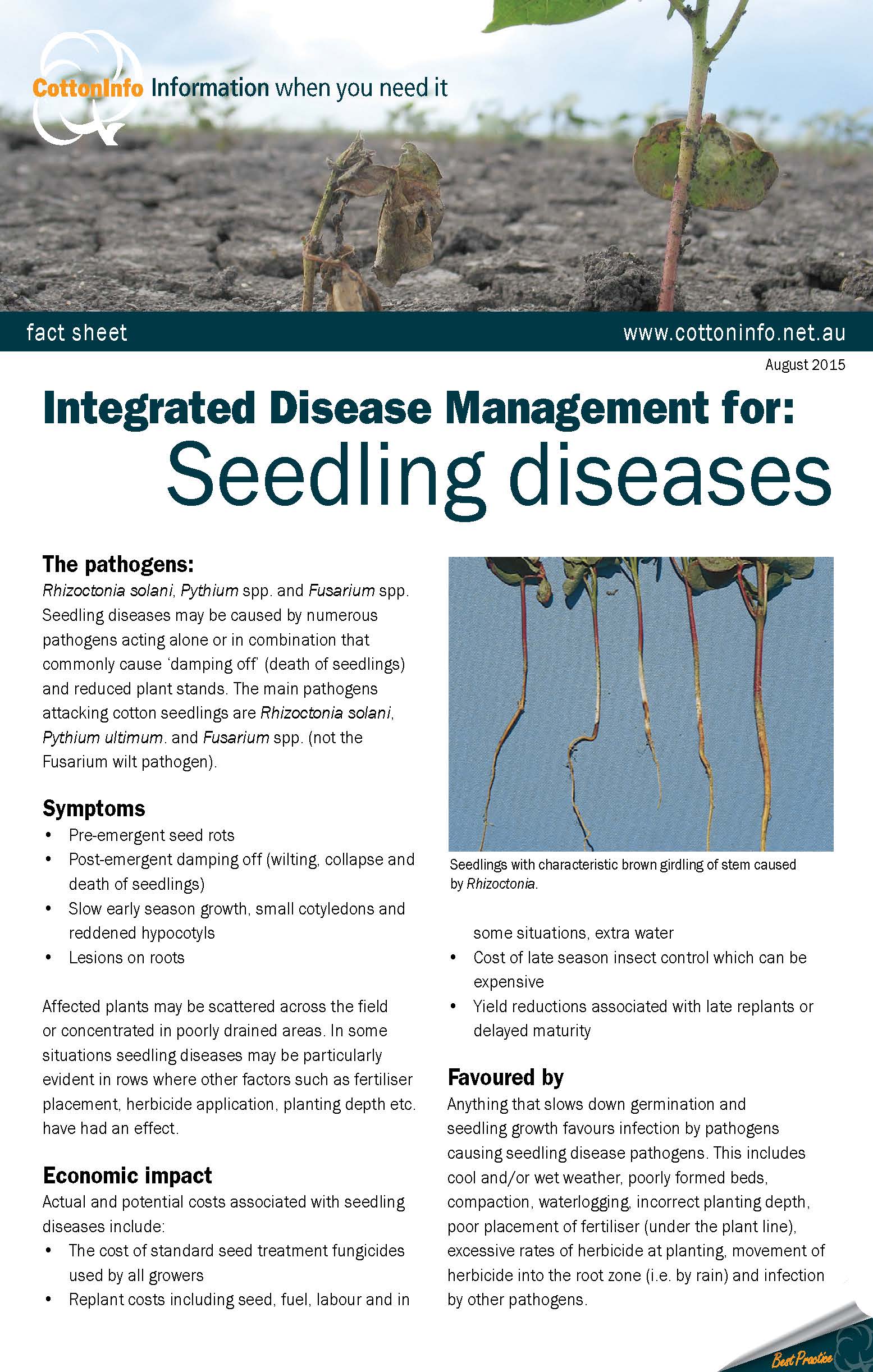 This fact sheet, one of the CottonInfo Integrated Disease Management (IDM) fact sheets series, looks at the IDM strategies to control seedling diseases.