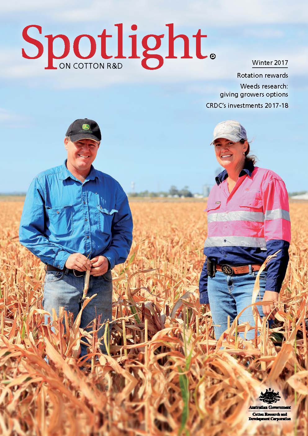 The summer edition of CRDC's magazine, Spotlight, shines a light on the triple threat of insects, diseases and weeds facing cotton growers, as a result of so much spring rain. This edition includes CRDC's latest pest research results, which highlight the need to practice sound Integrated Pes