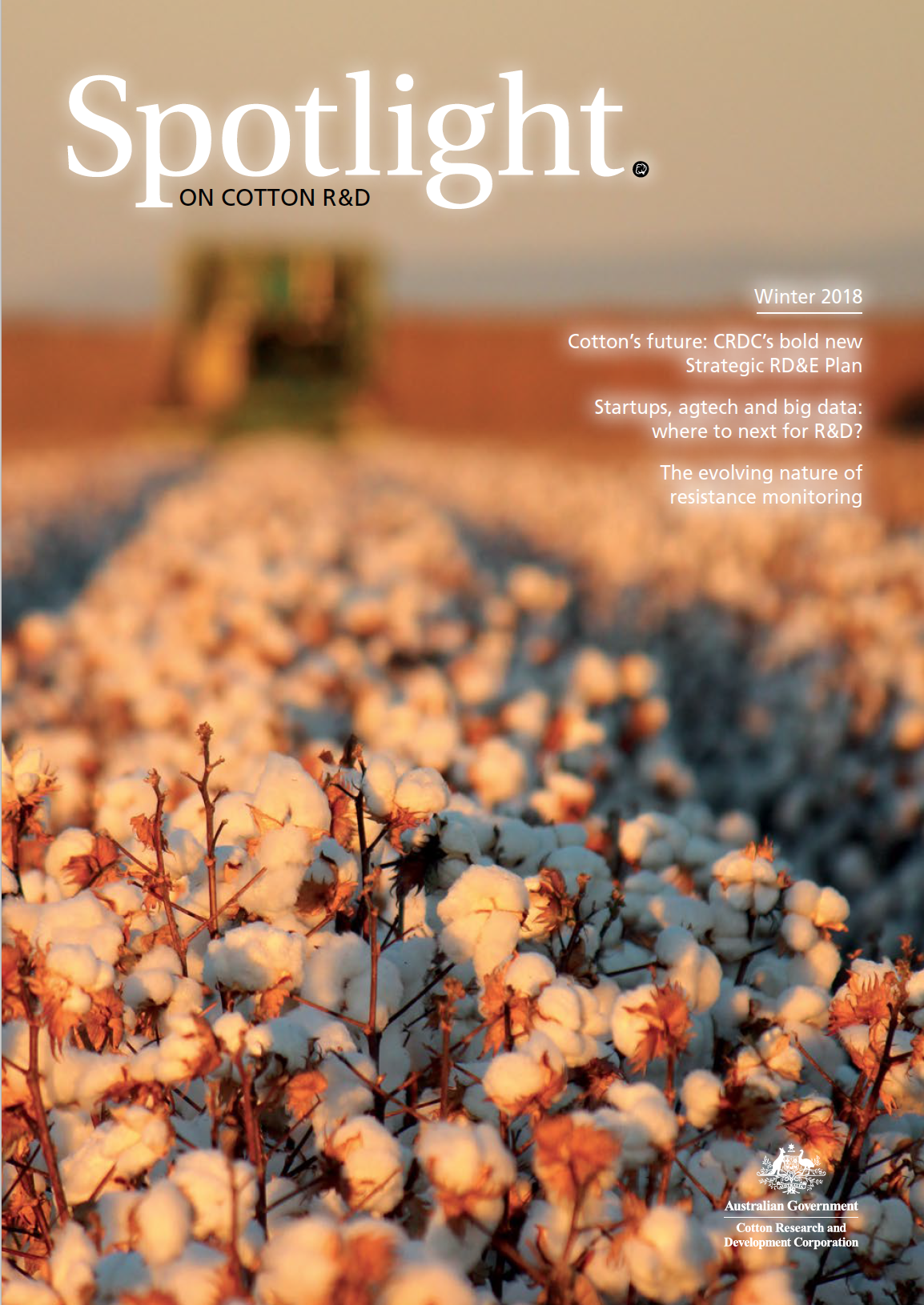 The summer edition of CRDC's magazine, Spotlight, focuses on research results and science-based best practices to help cotton growers successfully produce their 2018-19 crop, and contribute to sustaining the responsible production of Australian cotton.