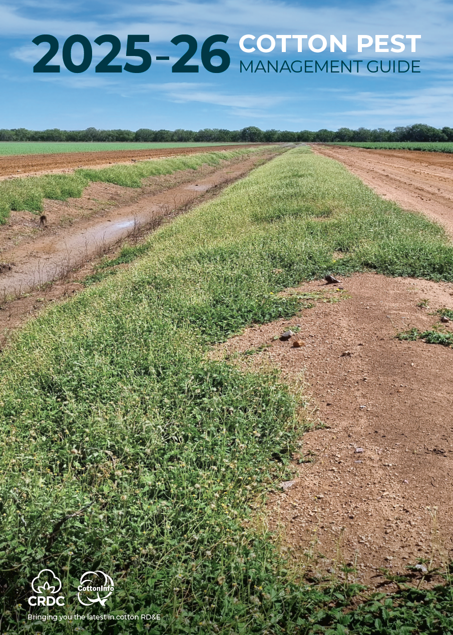 The annual Cotton Pest Management Guide provides you with a comprehensive summary of the key cotton crop protection issues and is brought to you by the organisations responsible for cotton industry research, development and extension (RD&E): the Cotton Research and Development Corporation (CR