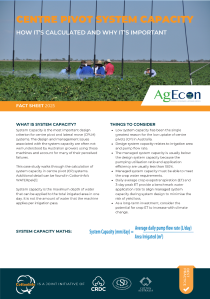 System capacity is the most important design criterion for centre pivot and lateral move (CPLM) systems. This fact sheet walks through the calculation of system capacity in centre pivot (CP) systems.