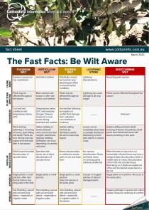 This fact sheet compares four different types of wilt - Fusarium wilt, Verticillium wilt, sudden wilt and reoccurring wilt - plus lightning strikes, so you can be aware of their various causes, symptoms and spread. Be Wilt Aware Fact Sheet_March 2023