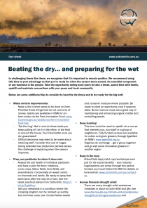 In this fact sheet, we bring you tips to consider to beat the dry times and to be ready for the big wet.