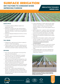 The CottonInfo Irrigation Toolbox Series provides key resources for irrigators. It includes factsheets and videos to help managers and farm staff better understand best practices for an efficient irrigation. This is factsheet #2: Key factors to consider when improving furrow irrigation. (Updated July 2024)