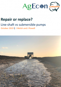 As traditional line-shaft pumps reach the end of their life, what are the options for irrigators? While line-shaft pumps may be more efficient per unit of energy, there are advantages of changing to submersible pumps. This report, from AgEcon for CRDC and CottonInfo, reviews the repair and replacement options as well as important considerations for monitoring and maintaining pump performance to ensure least-cost per megalitre extraction.